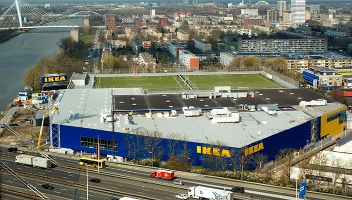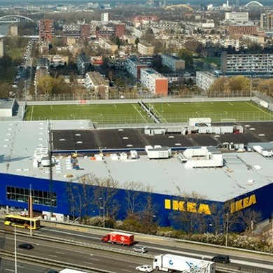 גג ירוק מגרש כדורגל על גג איקאה באוטרכט