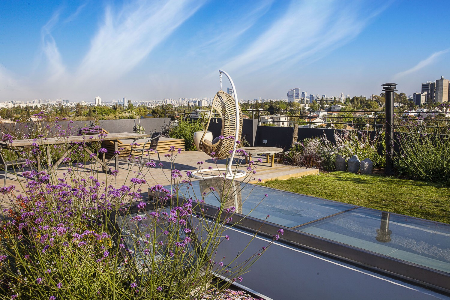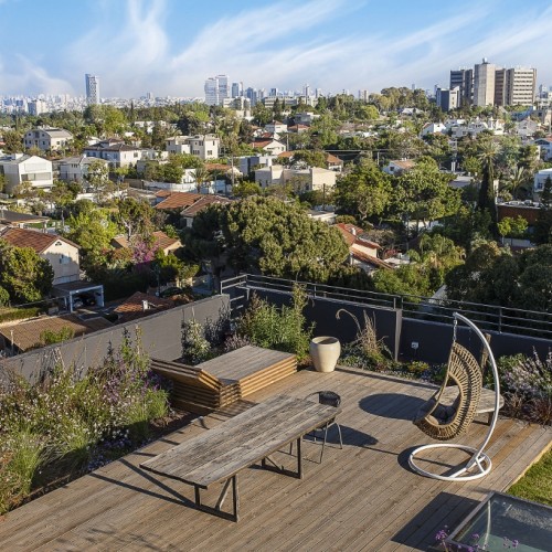 גינת גג ירוק סמי אינטנסיבי בקומה ה9 על בניין מגורים בתל אביב